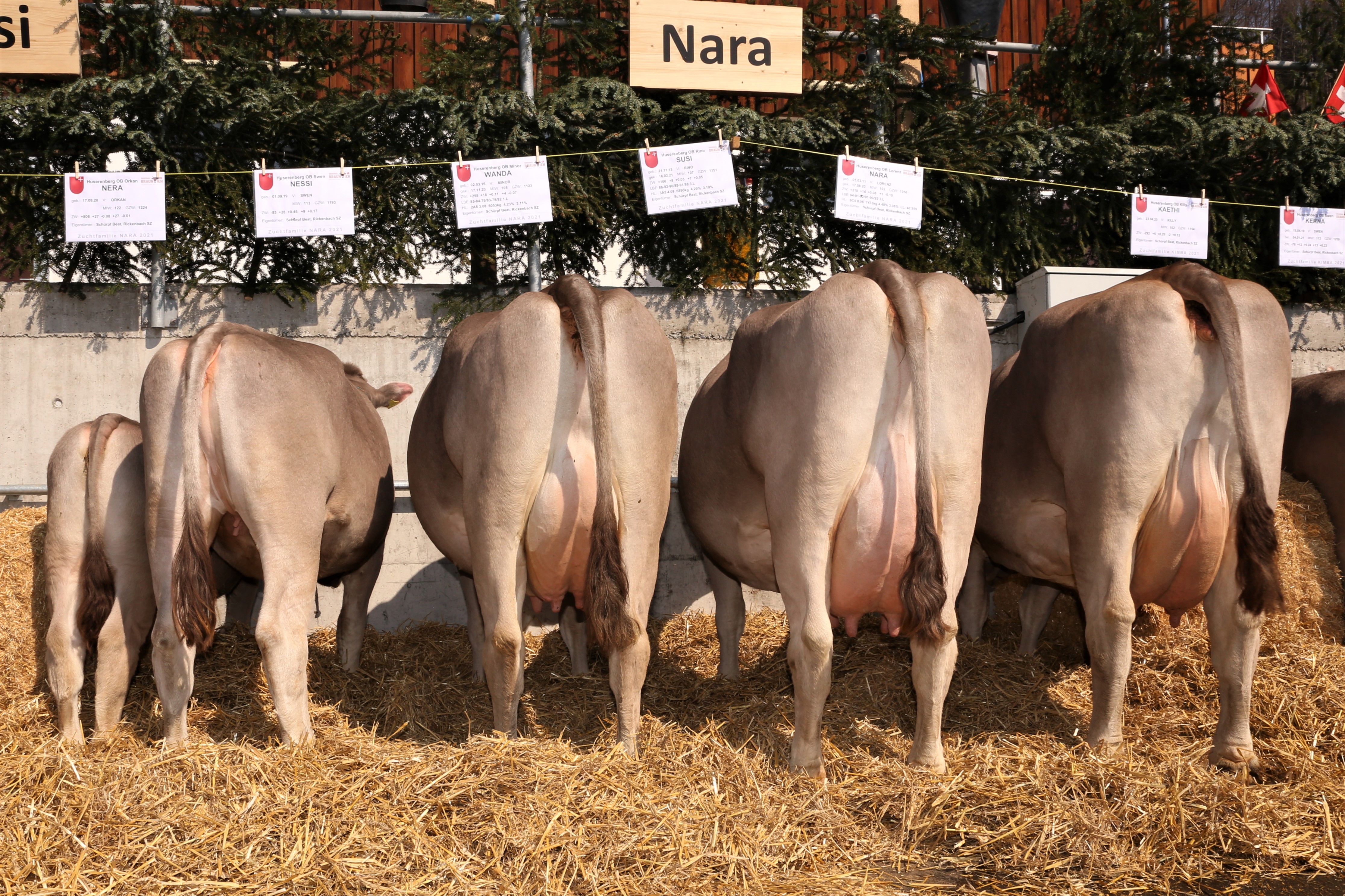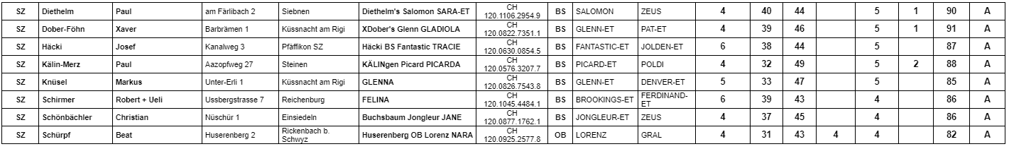 Bei den Original Braunviehkühen gelang Beat Schürpf ein ähnliches Husarenstück. Mit 82 Punkten erlangten die Nachkommen von Lorenz Nara das höchste OB-Ergebnis des Kantons Schwyz und mit Rico Kimba und Rino Susi übertrafen und erreichten nochmals zwei seiner Familien die 80 Punkte Grenze.
