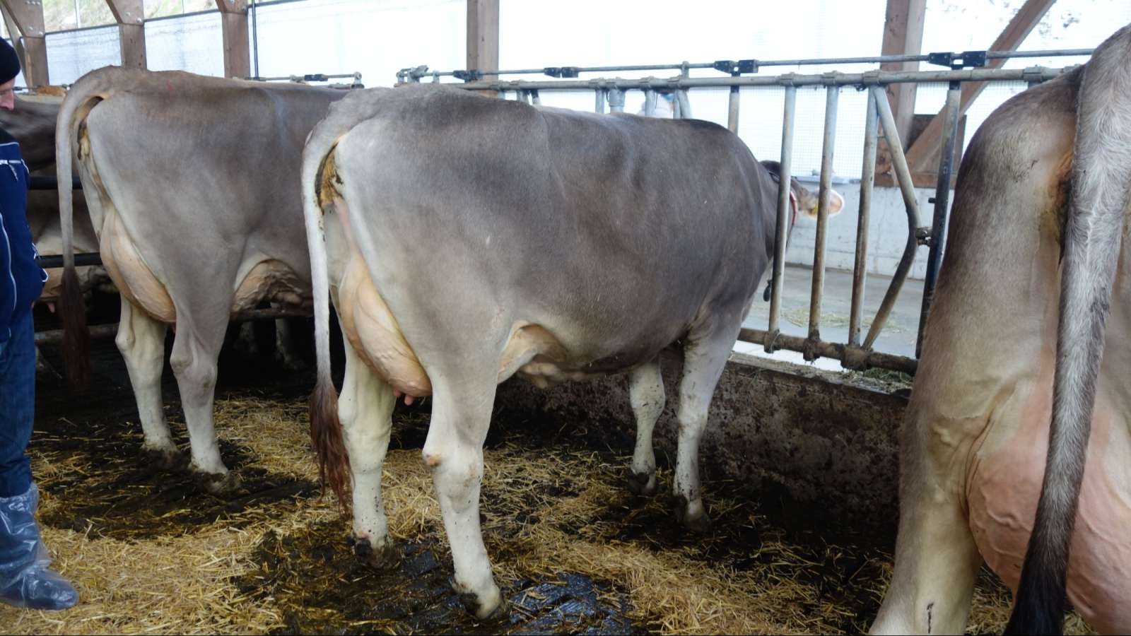 Das deutsche Fleckvieh ist sehr gut bemuskelt, die Euter sind aber für Braunvieh Züchter nur mässig.
