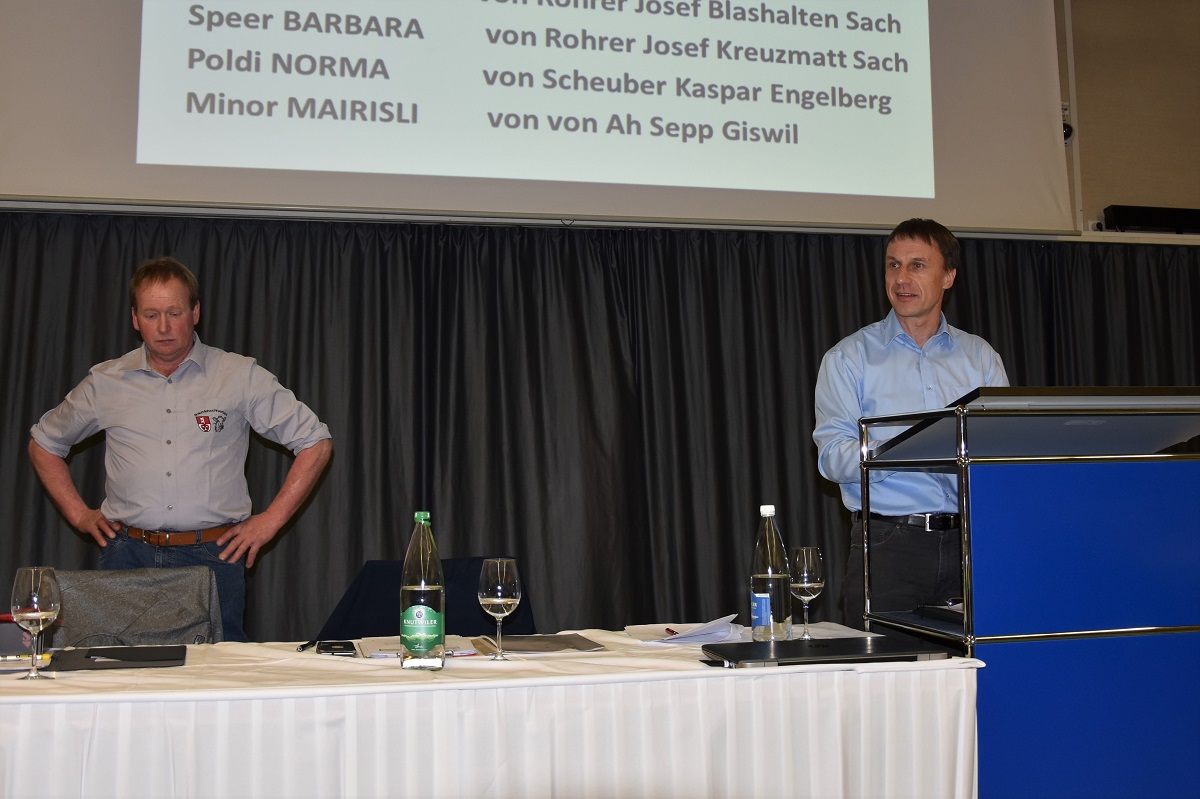 Kaspar Scheuber informierte die Delegierten und Gäste über die letztjährige Viehschau Engelberg. Vom 4.-5. Mai organisiert die VZG Engelberg eine Viehschau und feiert ihr 100-jähriges Bestehen. Ebenfalls einen Rückblick machte Walti Windlin über die Viehschau Sarnen vom letzten Herbst.