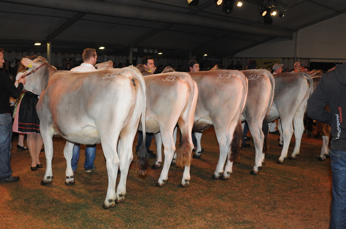 Schlussbild der BS Championwahl: (v.l.) Vice Champion Jongleur Shelby von Markus von Ah, Giswil; Champion Jongleur Jonamala von Daniel Sigrist, Kerns; Mention Honorable Nesto Nadine von Christian Imfeld, Lungern